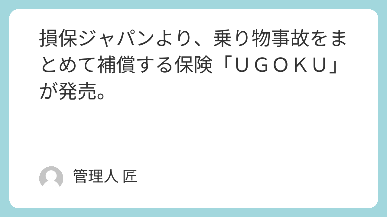 損保ジャパンより、乗り物事故をまとめて補償する保険「UGOKU」が発売。